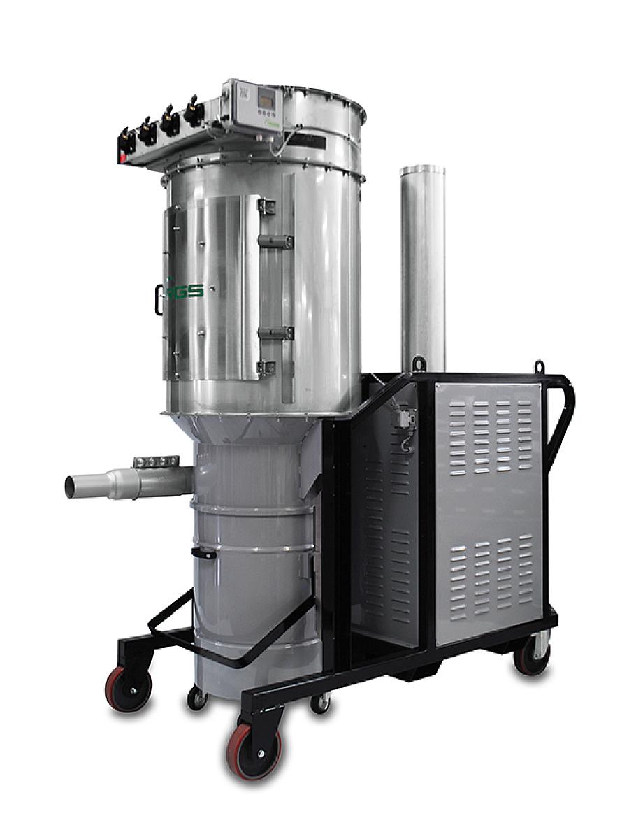 Trojfázový priemyselný vysávač s výkonom 20 kW a robustnou konštrukciou, určený pre náročné aplikácie. Umožňuje odsávanie veľkých objemov materiálu alebo obsluhu viacerých sacích miest súčasne. Je vybavený zbernou nádobou s objemom 175 l, vhodnou na manipuláciu vysokozdvižným vozíkom, a je kompatibilný so separátormi 400 a 800 l. Filtračná jednotka Ø 780 so 4 kartušami a automatickým čistením stlačeným vzduchom zabezpečuje vysokú účinnosť aj pri jemnom prachu.